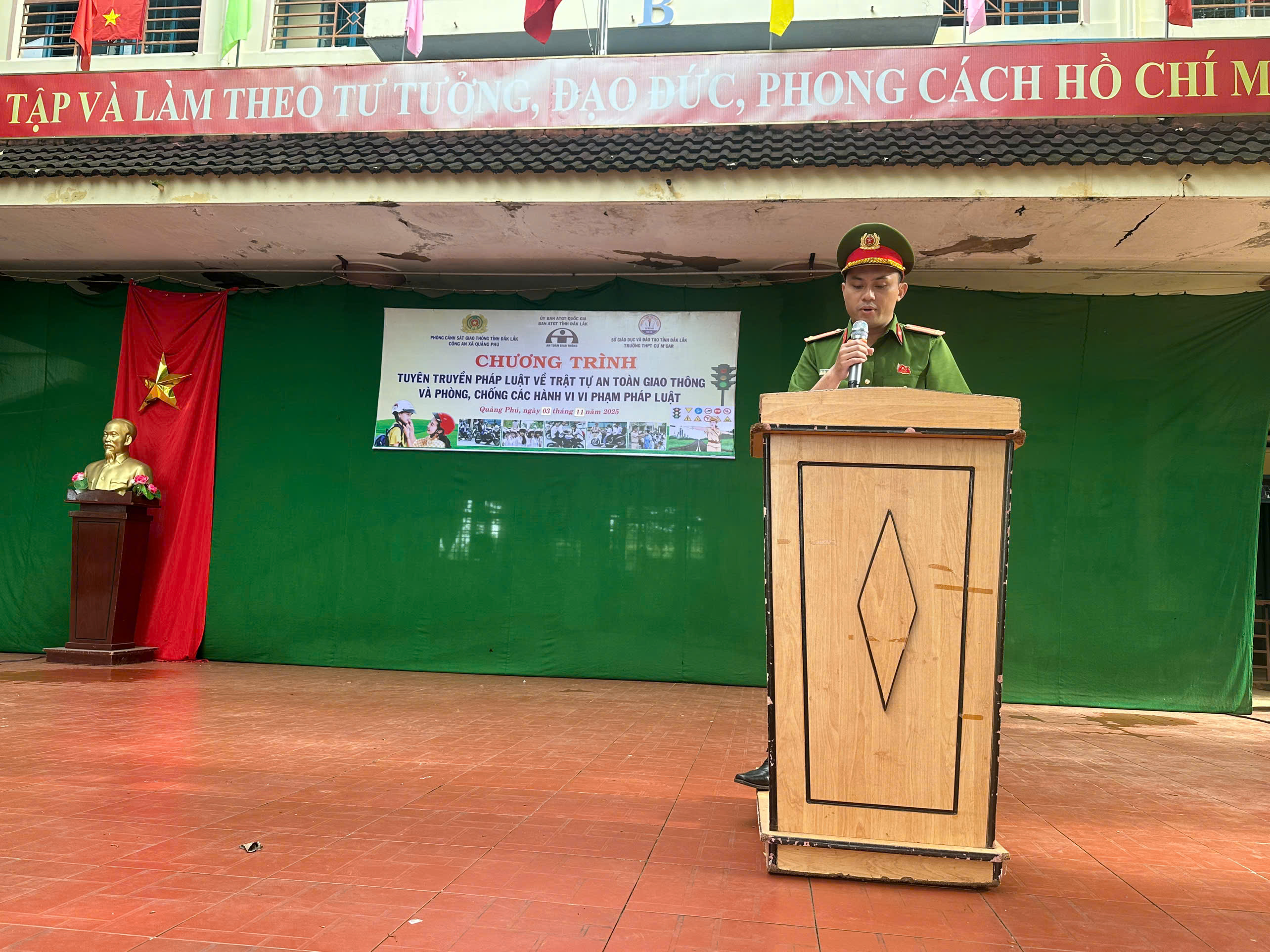 Buổi tuyên truyền tập trung vào các chủ đề quan trọng như: An toàn giao thông; tăng cường công tác giáo dục chính trị tư tưởng, đạo đức lối sống, phòng chống bạo lực học đường; bảo đảm an ninh trật tự, phòng chống tai nạn thương tích; Phòng cháy chữa cháy và bắt cóc Online Tại buổi tuyên truyền, đồng chí Bùi Văn Tấn thuộc phòng CSGT PC08 đã trực tiếp phổ biến những quy định cơ bản của Luật Giao thông đường bộ liên quan đến học sinh; hướng dẫn kỹ năng tham gia giao thông an toàn, cách nhận diện và phòng tránh nguy cơ tai nạn. Cách đội mũ bảo hiểm khi tham gia giao thông. Những kiến thức này góp phần xây dựng ý thức tự giác, văn hóa giao thông trong lứa tuổi học đường.
