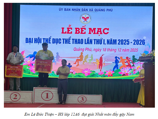Đại hội Thể dục thể thao xã Quảng Phú lần thứ I, năm 2025 được khai mạc trọng thể tại Trung tâm Truyền thông – Văn hóa – Thể thao xã Quảng phú ngày 13/12/2025. Trường THPT Cư M’gar tham gia đầy đủ cả 6 môn, 8 nội dung với 55 vận động viên. Những vận động viên xuất sắc được lựa chọn đã ra sức tập luyện, nỗ lực thi đấu đạt thành tích cao góp phần đóng góp thành tích TDTT chung của nhà trường.